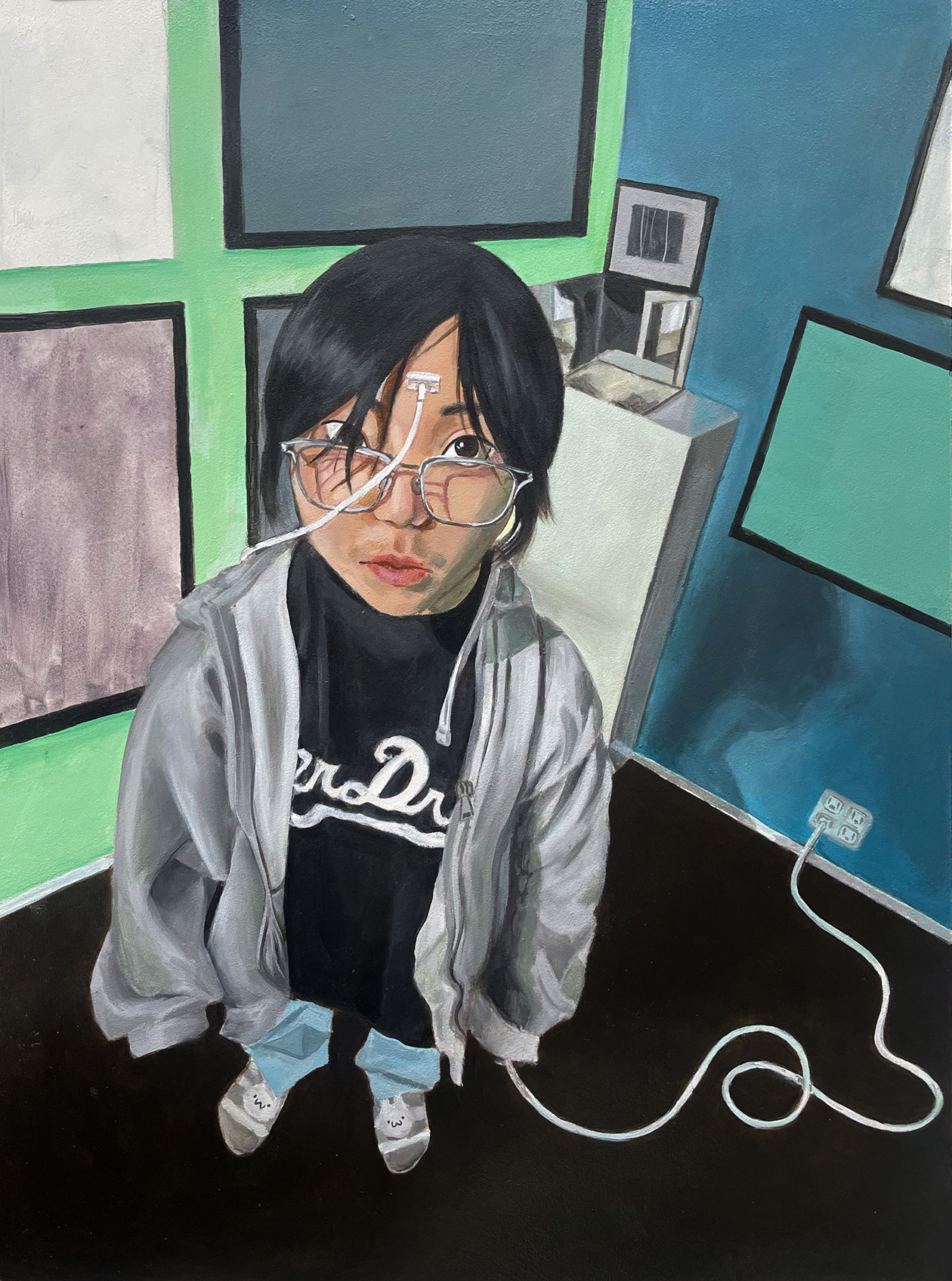 I painted this piece with the intention of creating only a self portrait but as I kept painting and added more details, this piece began to carry the message of how people need to rest or take breaks from time to time. People can be so focused on work or their duties that they can even forget to take some time for themselves. Our bodies and minds are not indestructible so we have to treat them with care.