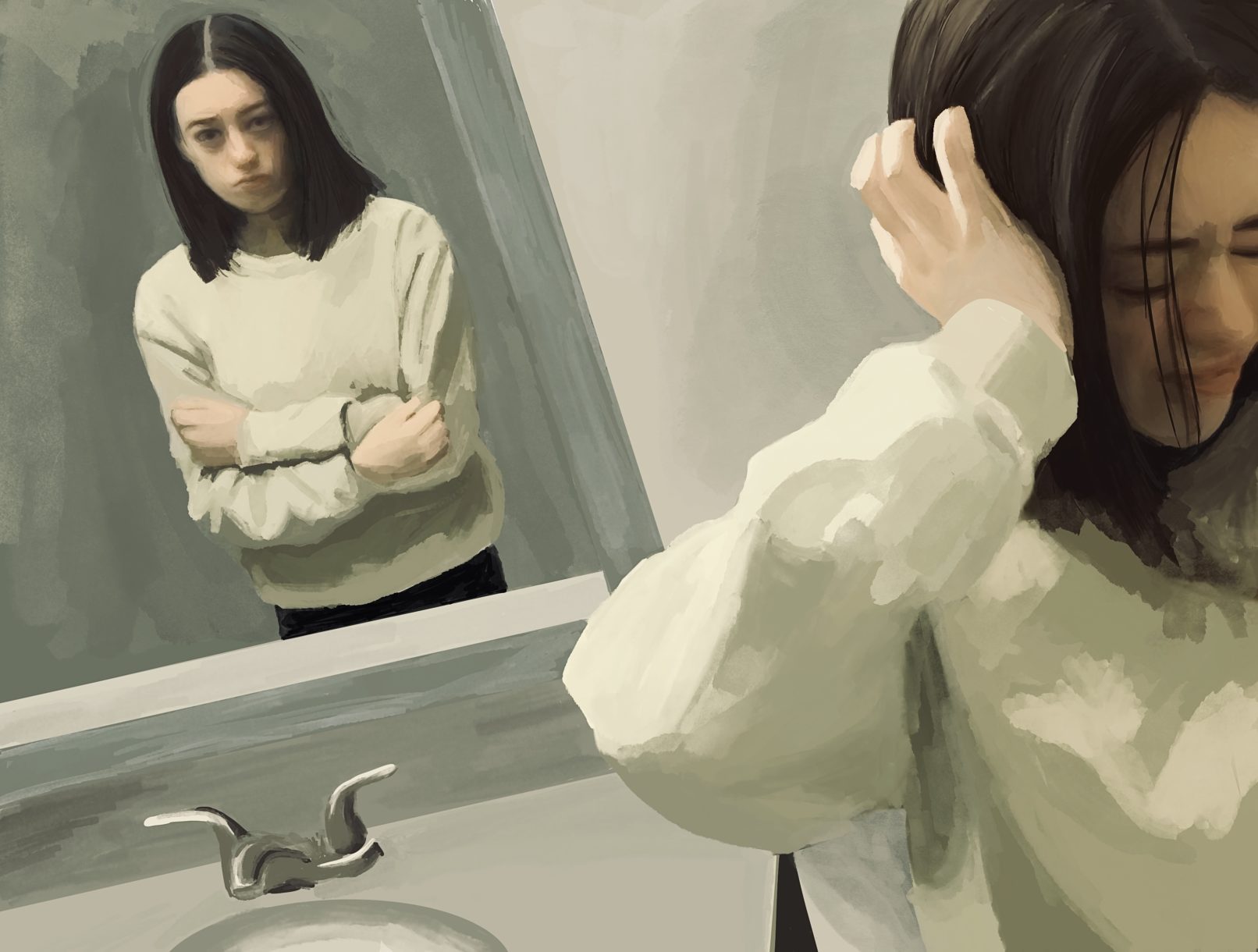 Throughout my life, I have grown viscerally aware of the effect and impact that mental health holds in each of our lives- whether that may be our friends, our family members, absolute strangers, or ourselves. I believe that ignoring addressing one's mental health is like breaking a bone and refusing to get a cast. This idea is what inspired the subject matter and title- Look At Me. This image is a self portrait and was created digitally using Procreate. I decided to utilize a self portrait set in my own bathroom to emphasize how close to home this topic is to me. I chose to paint this digitally in the style of realism to attempt to mimic a hazy, glossy photograph. The version of me outside of the mirror represents the choice of hiding from addressing the truth (mental health), while the calm, collected version of me inside of the mirror represents the opposite- healing and acceptance without stigma or judgement. When people observe this image, I hope they might look within themselves and consider, "What am I not addressing?" "What am I hiding from?" I hope this image encourages people to be open to healing mental wounds that may otherwise have been ignored. I hope people feel encouraged to look in the mirror of their minds.